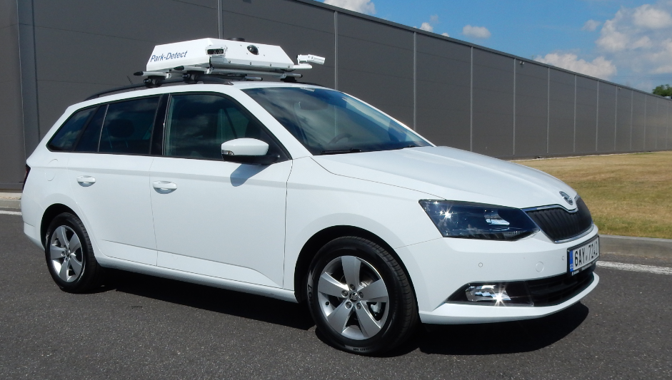 Auto pro kontrolu parkování vybavené kamerami a softwarem pro rozpoznávání poznávací značky vozidla. Kamery snímají za pohybu auta poznávací značky. Z vozidlové jednotky jsou zasílána do nadřazeného systému: