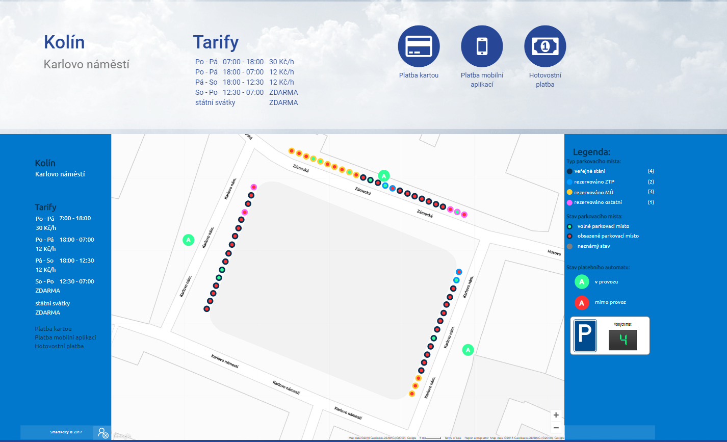 Po parkování on street je dodáván back office software, která zajišťuje komunikaci s parkovacími sensory, informačními tabulemi, parkovacími automaty a vizualizačním software. Přes webový prohlížeč může uživatel podle svého oprávnění získávat informace o obsazenosti parkovacích míst v grafické podobě, má přístup k bohatým statistikám a technologickým informacím. Vizualizace a statistiky jsou řešeny průmyslovým vizualizačním softwarem myScada.